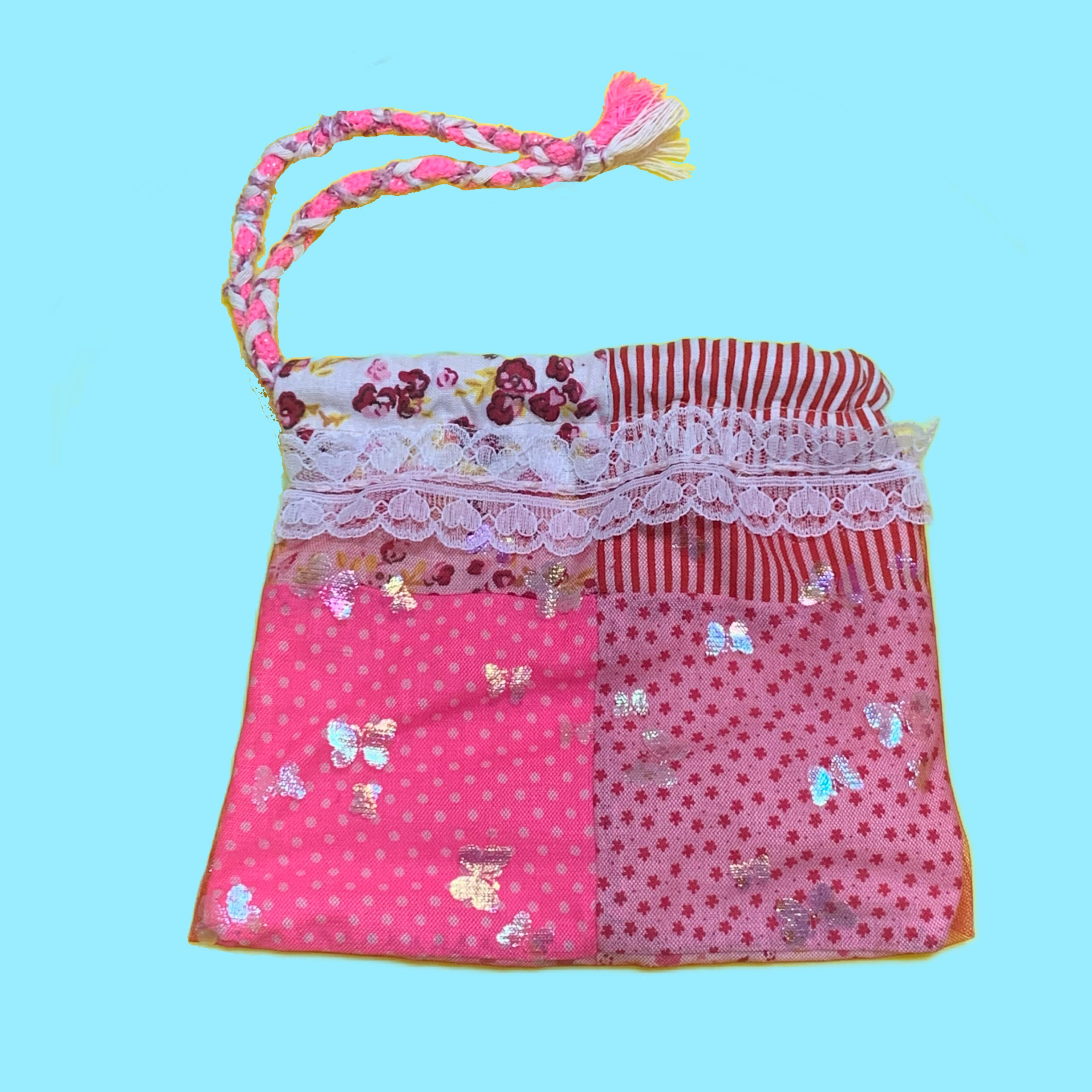 布や紐の組み合わせ、デザインにもこだわった一点ものです。推しの硬質ケース、アクスタを入れるも良し、ちょこっと生活用品を持ち歩きたい時に便利⭐︎