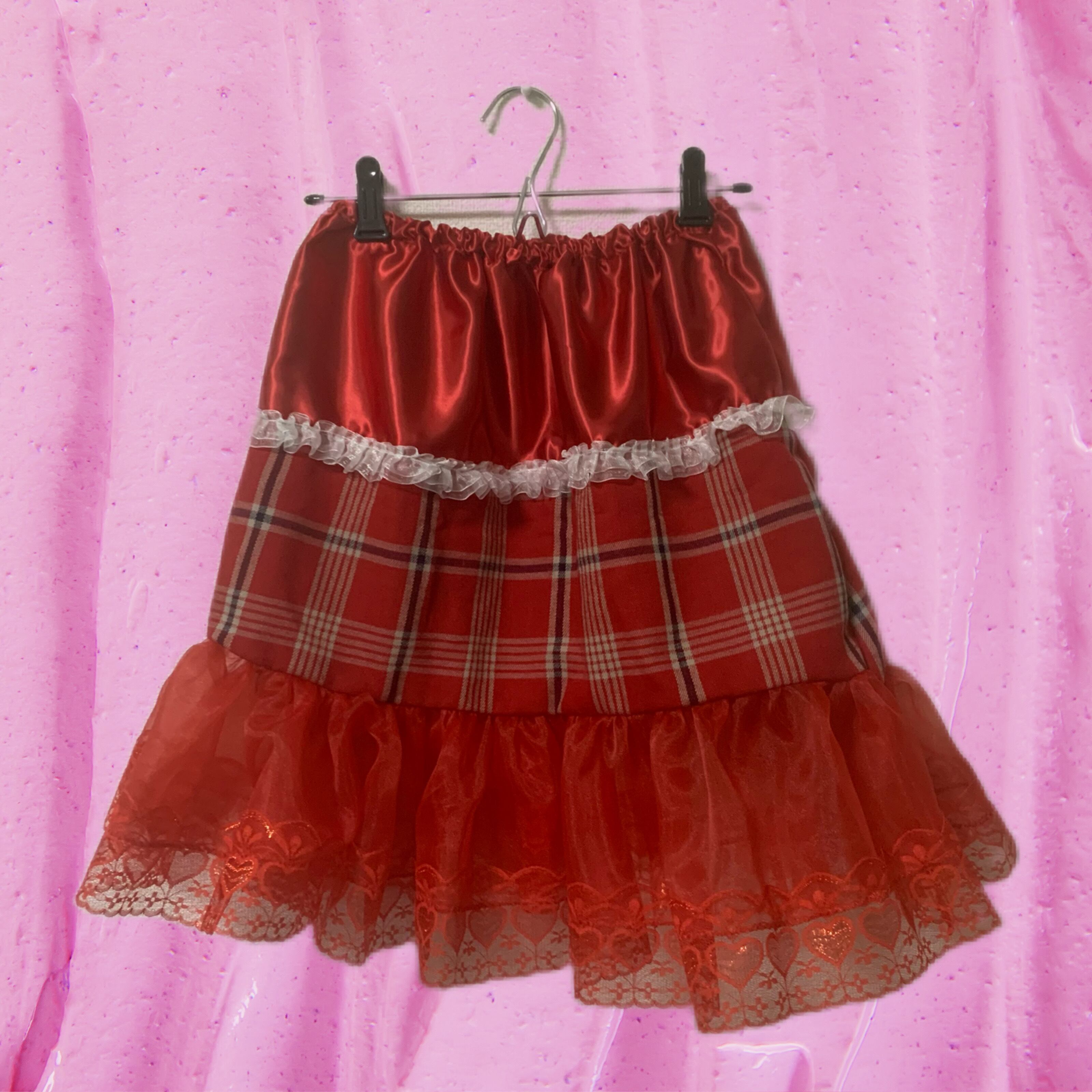 赤を基調とした膝上丈のスカート。