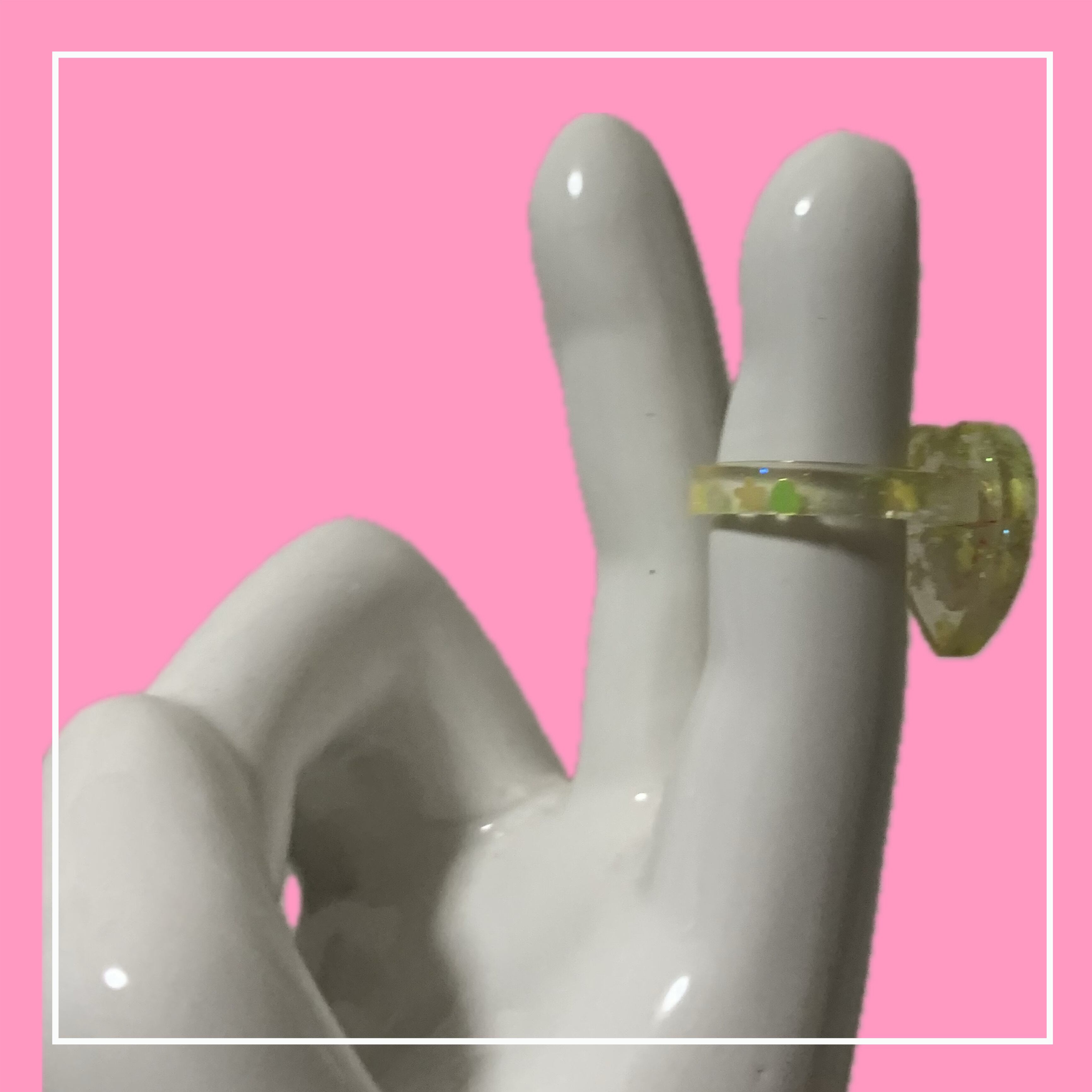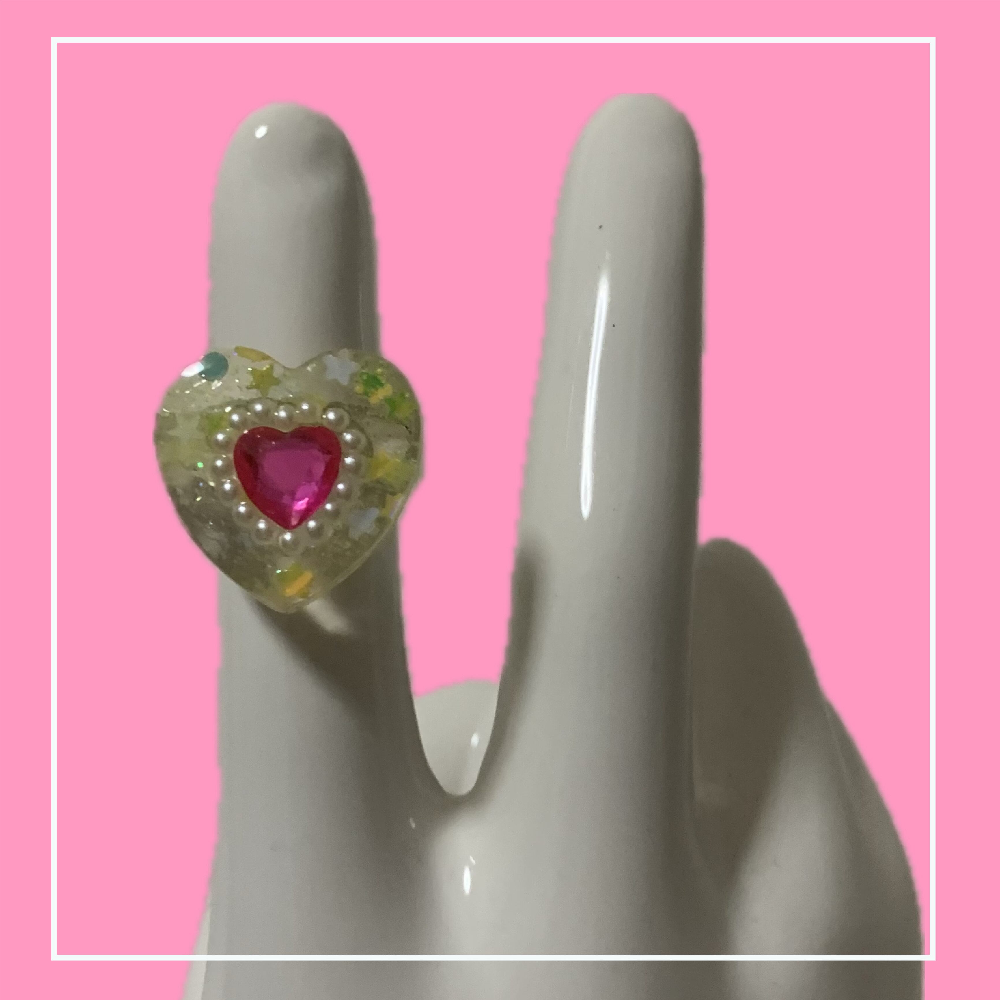 手作りパーツとキラキラパーツ付きリングは手元を華やかに見せてくれる一点ものです!